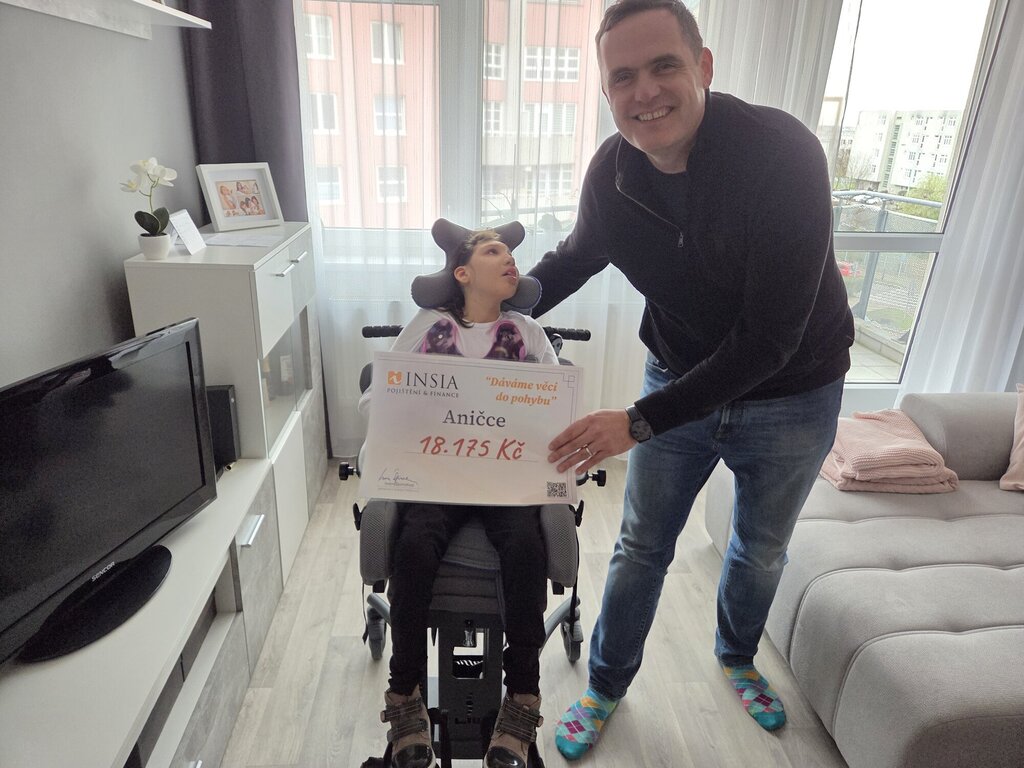 Anička je devítiletá holčička s nádhernou duší, která vnímá svět jinak než většina z nás. I když nesedí, nechodí ani nemluví, dokáže svým pohledem, úsměvem a reakcemi vyjádřit radost, lásku a vděk. Miluje světla, písničky, doteky a blízkost lidí – tehdy její oči doslova září. Od narození bojuje s vážnými neurologickými diagnózami – těžkou mikrocefalií, dětskou mozkovou obrnou, epilepsií, kvadruspasticitou, zrakovou vadou a dalšími přidruženými potížemi. Je zcela odkázaná na 24hodinovou péči své maminky, která se o ni stará sama. Anička je krmena pomocí PEG sondy a za svých devět let podstoupila několik lékařských zákroků a hospitalizací. Přesto všechno nikdy neztrácí sílu a odhodlání. Každý den bojuje s úsměvem a její drobné pokroky jsou obrovským vítězstvím.