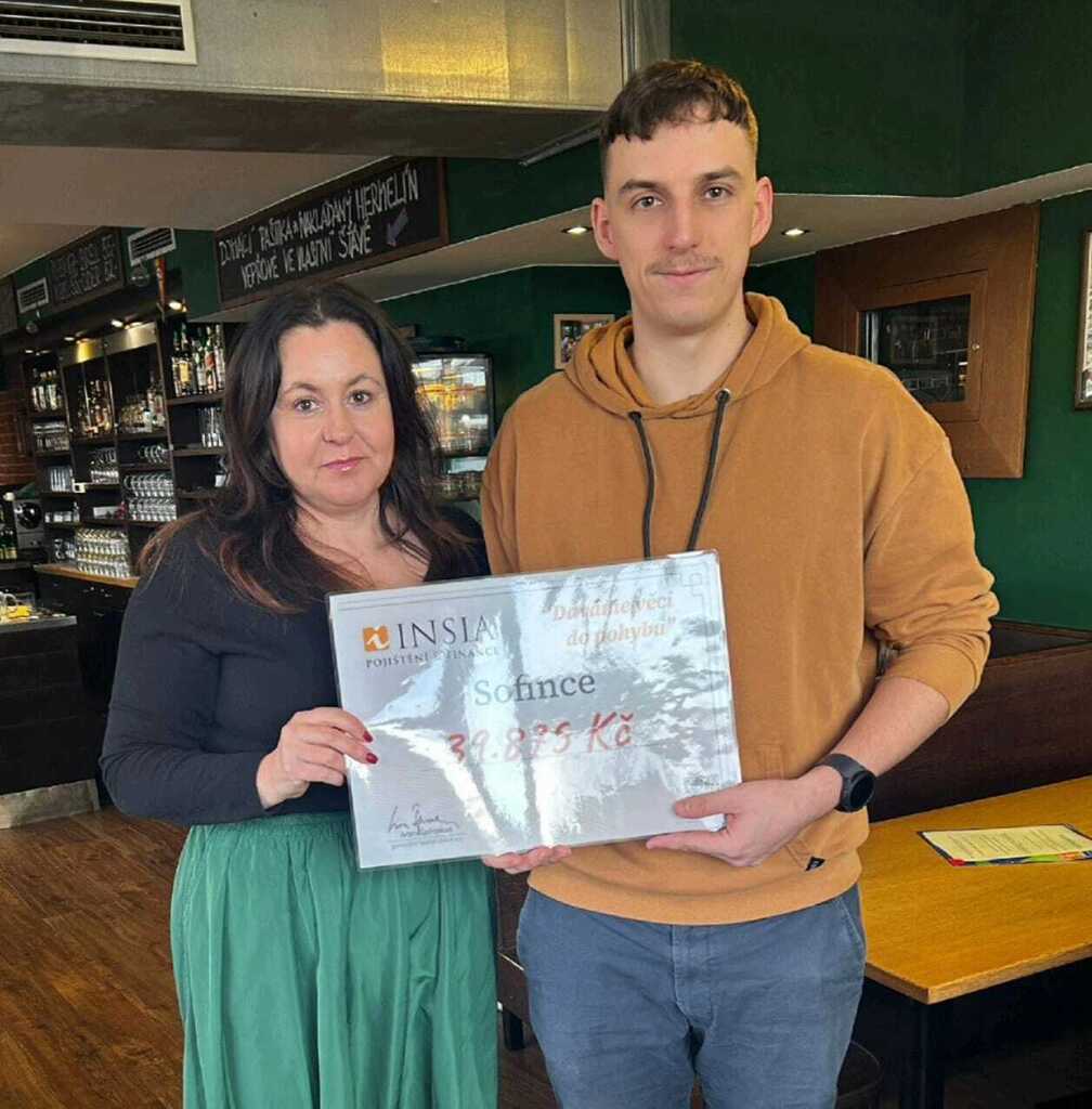 Částku ve výši 15.075 Kč předala panu Pavlu Forstovi slečna Lucie Kafková.