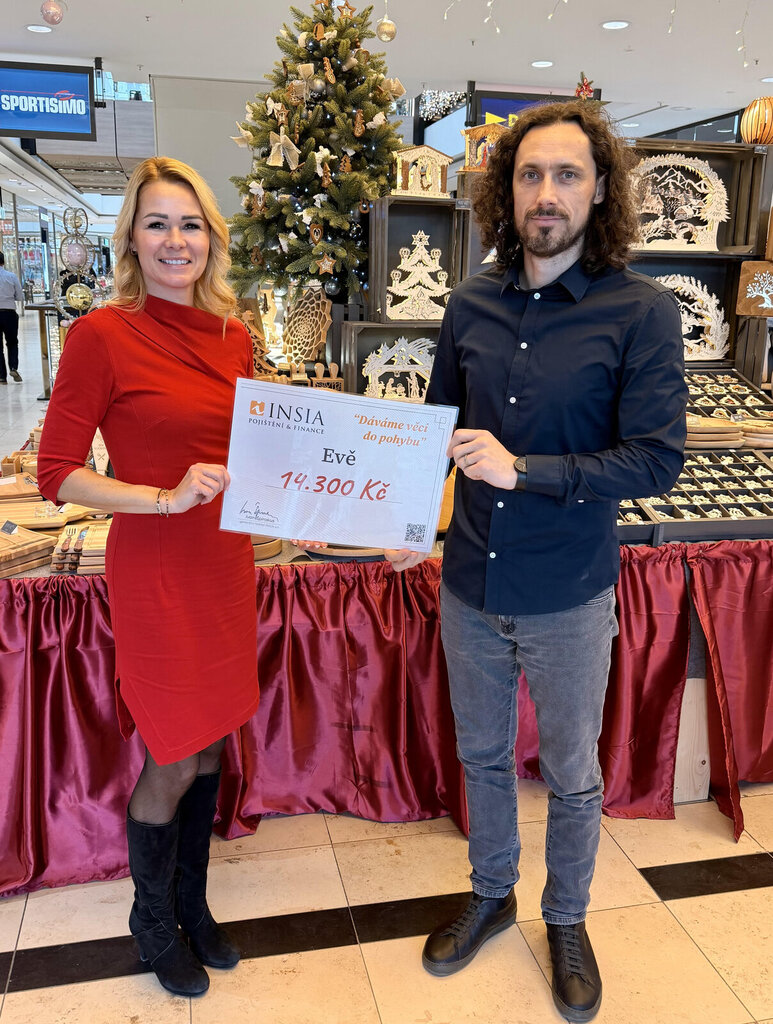 Částku ve výši 14.300 Kč převzal pan Tomáš Rýdl - manžel paní Evy z rukou paní Petry Páralové.